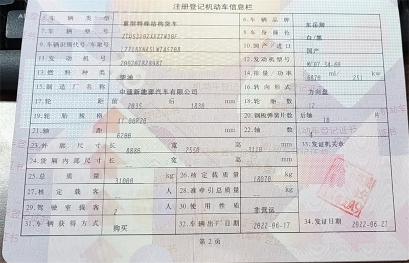 2022年6月,重汽豪沃前四后八勾臂垃圾車,國(guó)六,31噸,德國(guó)曼340馬力,10檔變速箱(帶高低檔),